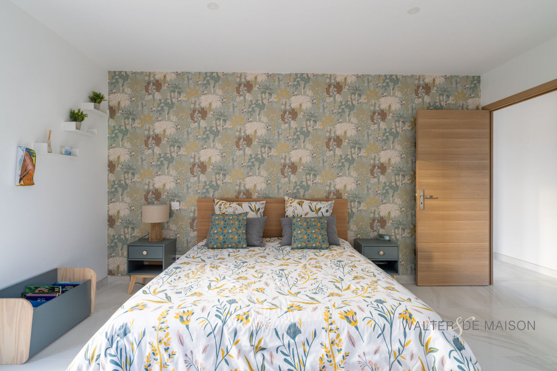 De Beaux volumes à l’image de son espace salon/salle à manger/cuisine baigné de lumière avec des matériaux de grande qualité.