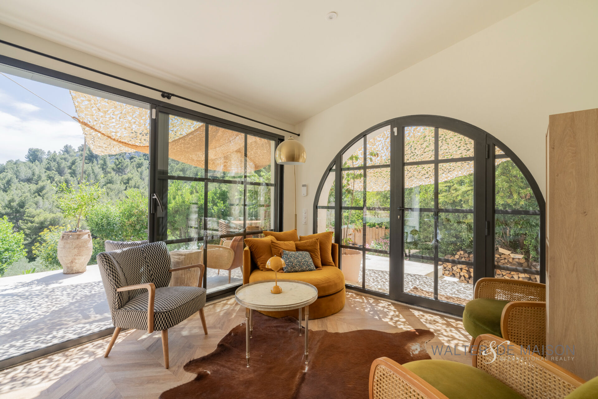 Nichée dans un environnement naturel rare, au sein du Parc naturel régional des Alpilles, cette maison d’architecte offre un équilibre parfait entre sérénité, esthétisme et confort. Située à l’extrémité d’un petit domaine résidentiel, elle bénéficie d’un calme absolu et d’une vue imprenable sur les collines, les oliviers et les falaises calcaires typiques de la région.