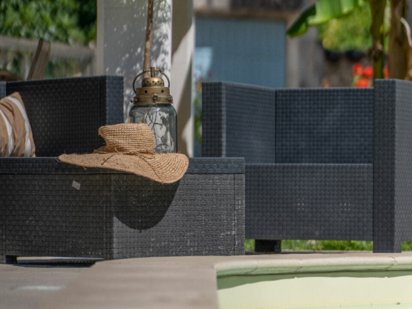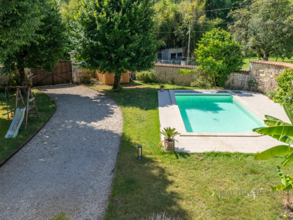 – Piscine chauffée 4×8, terrasse récente, pool house neuf, jardin clos de murs en pierre avec grand portail motorisé.