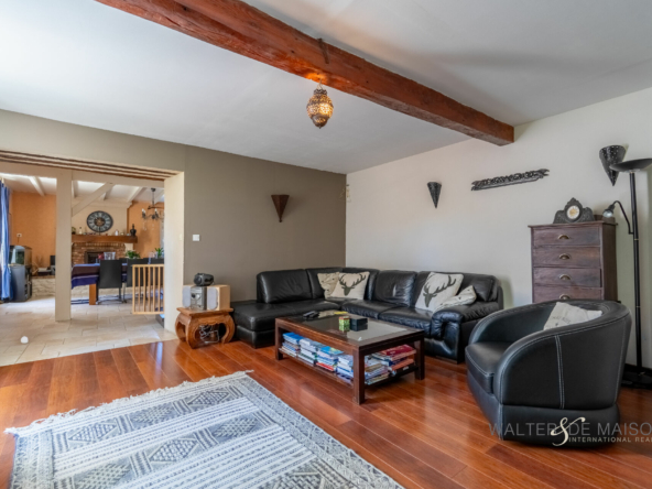 – Pièces de vie lumineuses : cuisine ouverte, salle à manger avec cheminée, salon