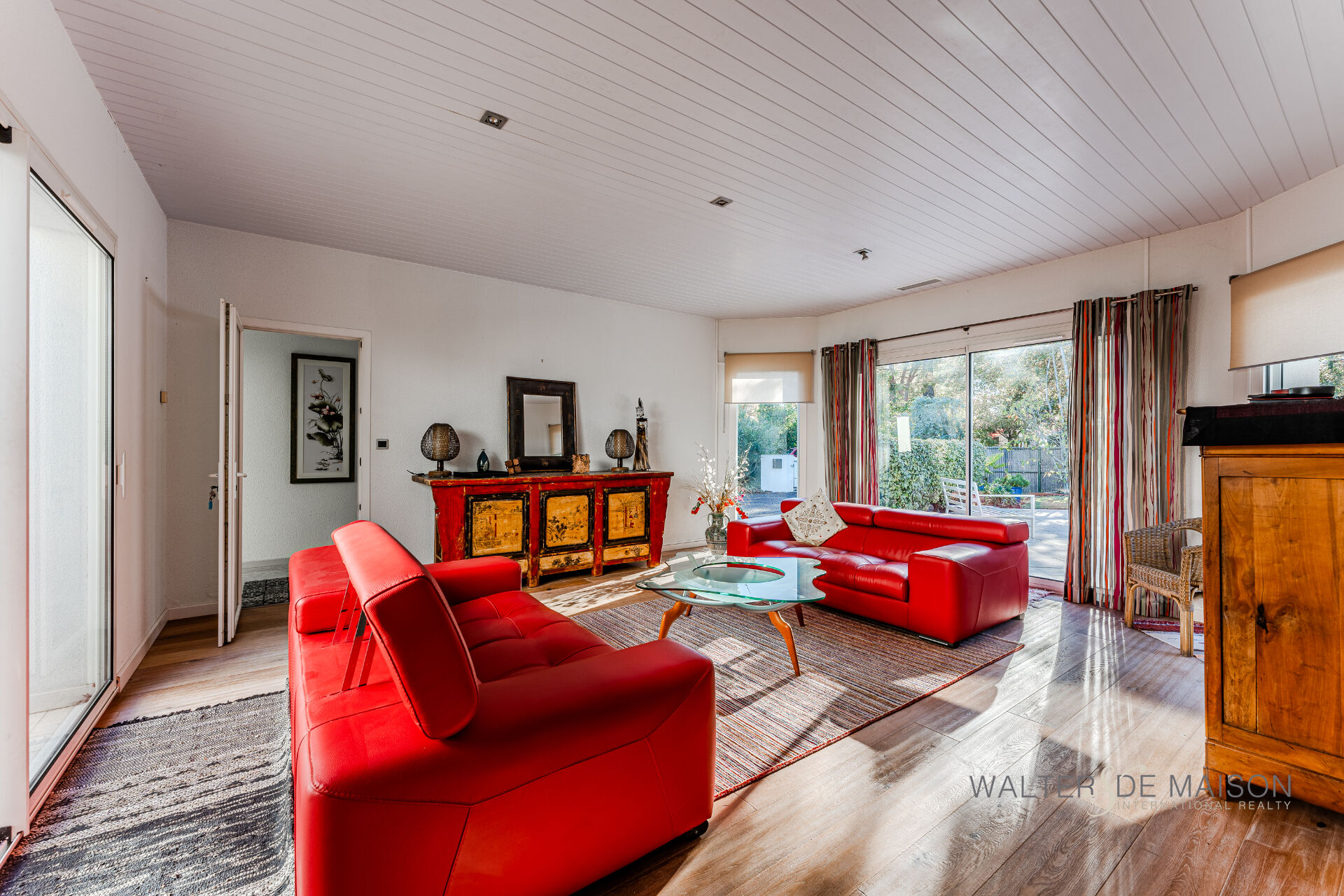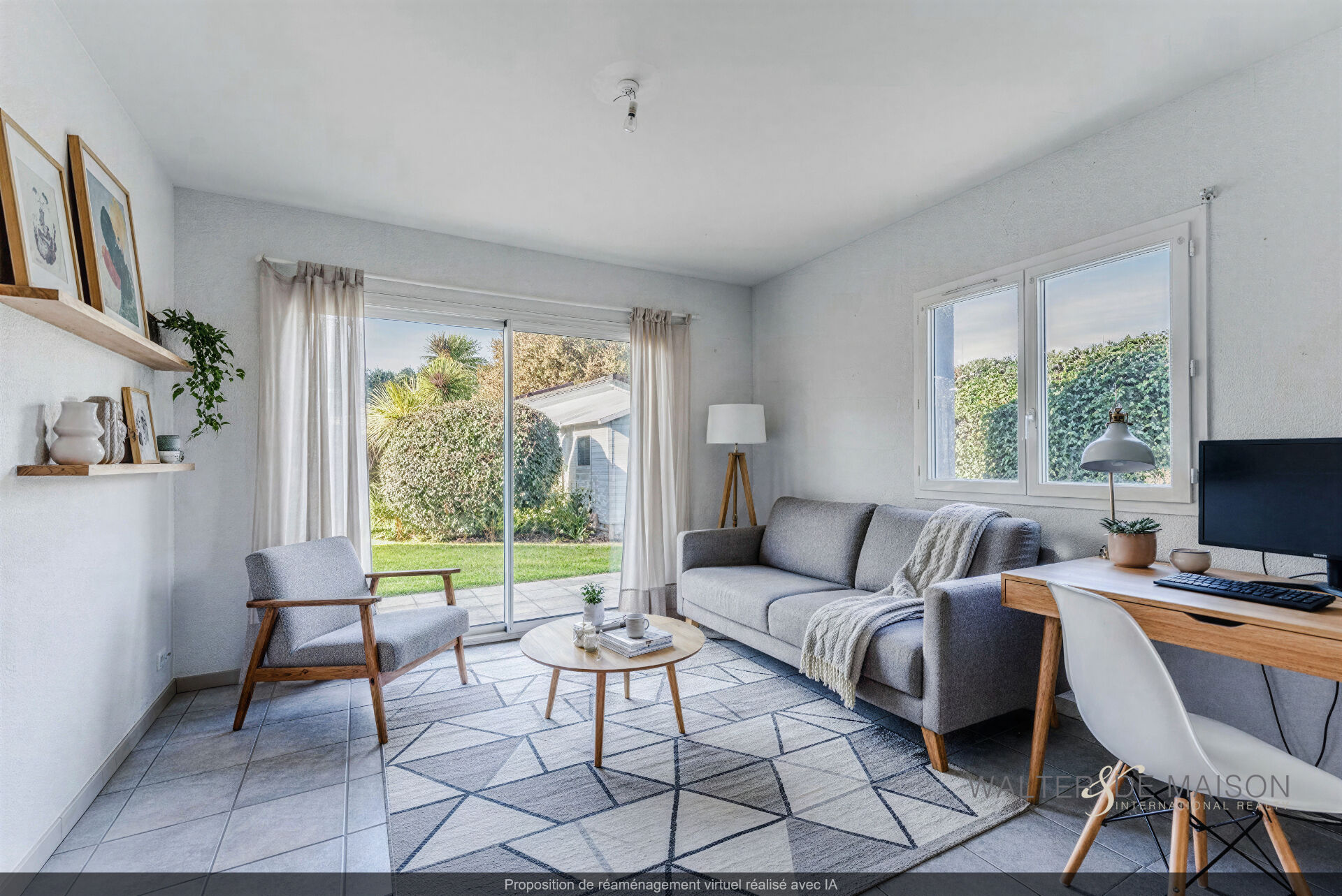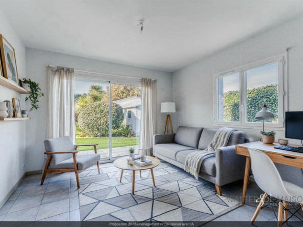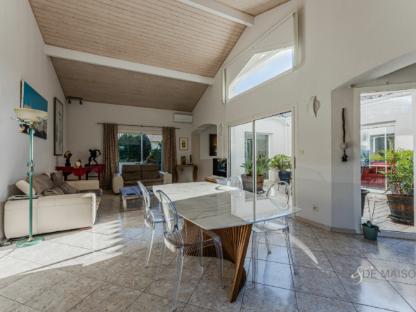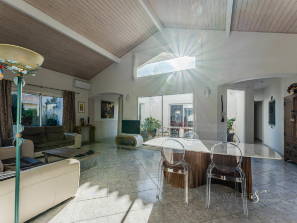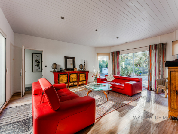 Un séjour/salon lumineux de 37 m² s’ouvrant sur le patio et le jardin.