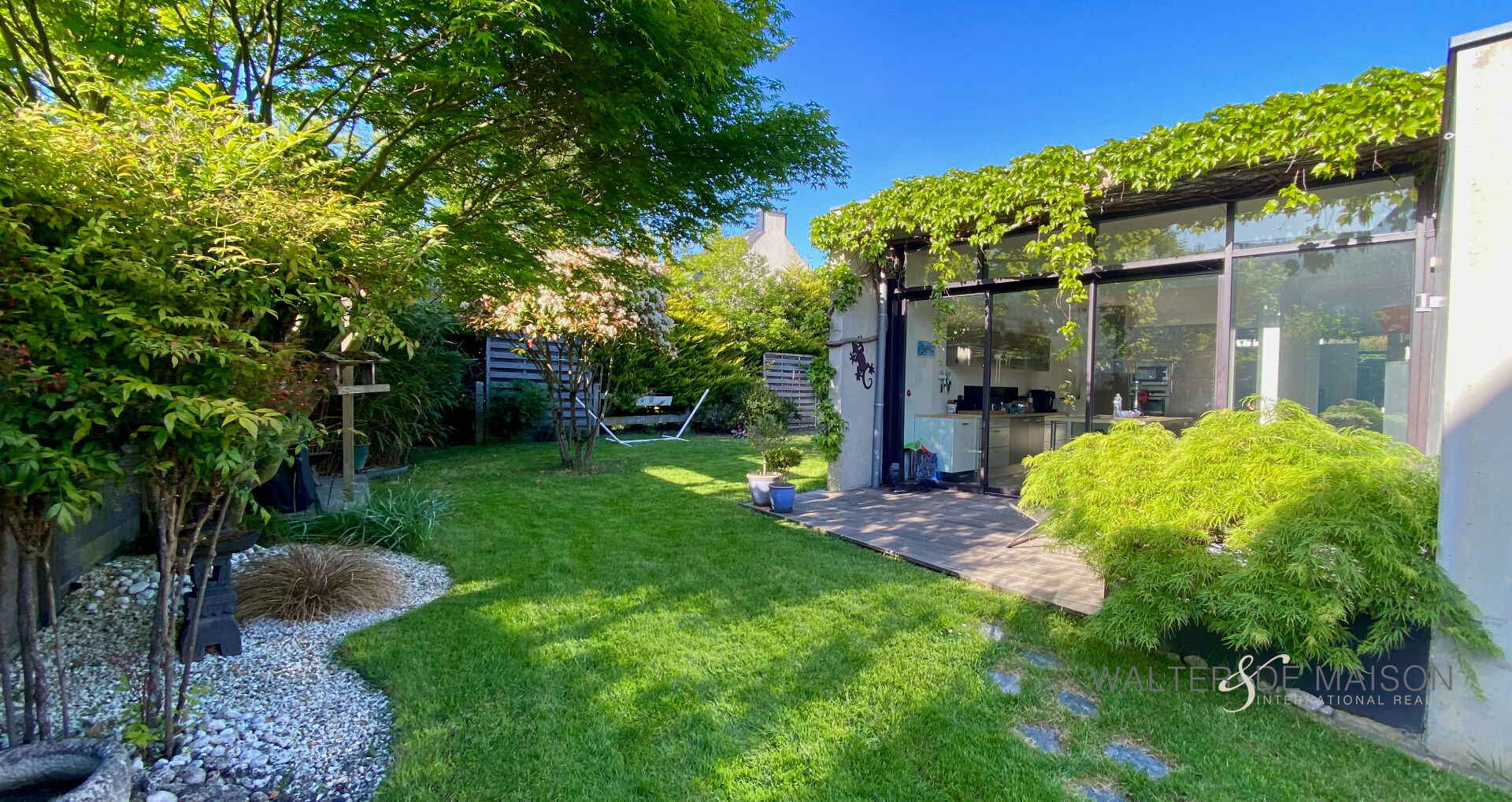 Annexes : Garage avec cellier et jardin paysagé clos.