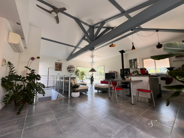 Volumes généreux, lumière omniprésente, et une sensation d’espace dès l’entrée grâce à un très grand séjour cathédrale ouvert sur les extérieurs.