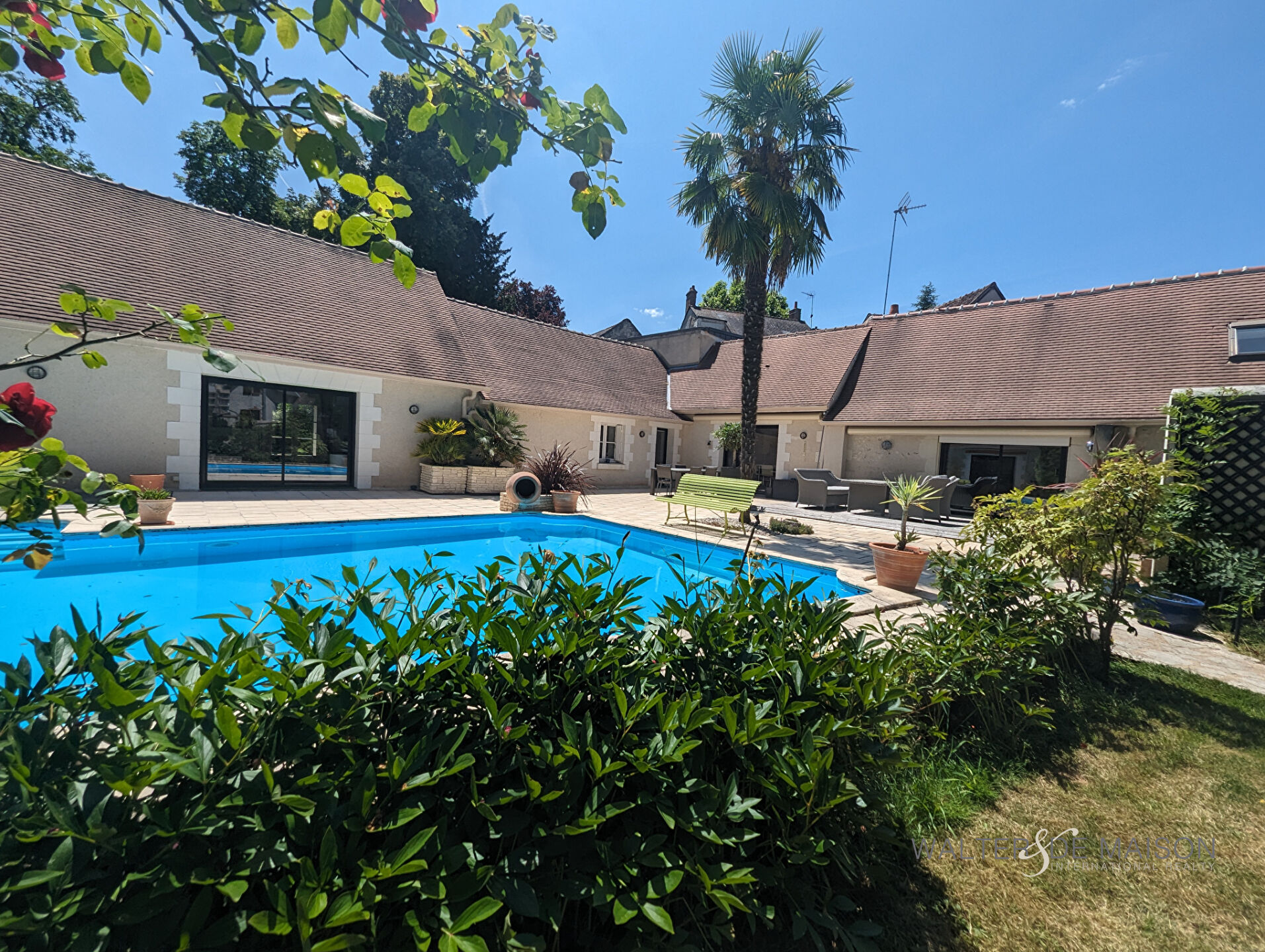 Toutes les pièces de vie s’articulent harmonieusement autour d’une somptueuse terrasse avec piscine chauffée et son Pool