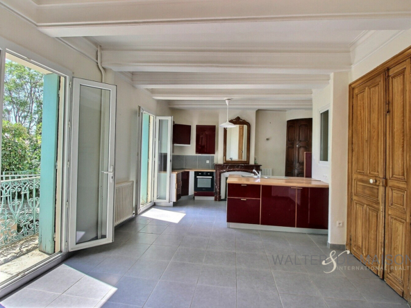 Au premier étage, une vaste pièce d’environ 40 m2 comprend une cuisine ouverte donnant accès à une petite passerelle menant à une terrasse ombragée, sans vis-à-vis, d’environ 31 m2. Au même niveau, se trouve une salle d’eau avec W-C.