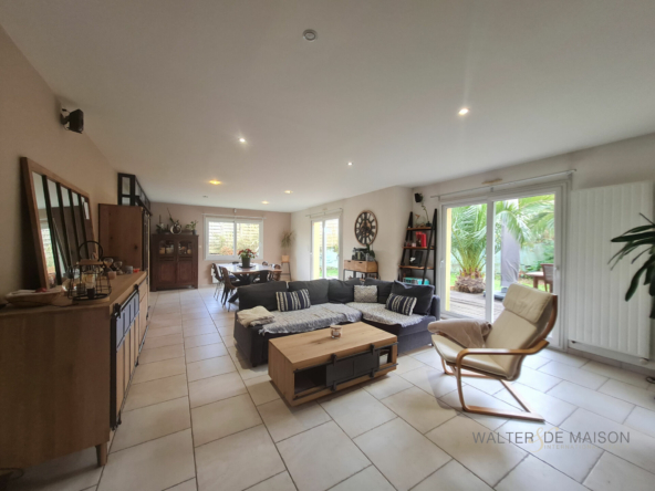 -Au RDC une vaste pièce de vie lumineuse de 43 M² environ, une cuisine aménagée et équipée, une arrière cuisine, un espace buanderie, une extension avec sa suite parentale et son accès direct au jacuzzi.