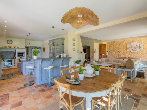 Cette Propriété plein sud avec vue panoramique à couper le souffle d’environ 300m² s’érige sur un terrain de 3200m² avec sa piscine de 11×5 et son Olivieraie de plus de 22 pieds. Elle se compose d’un spacieux salon avec cheminée ancienne ,salle à manger ,cuisine semi ouverte de plus de 100m² , de trois suite dont une master au rdc avec vue jardin.