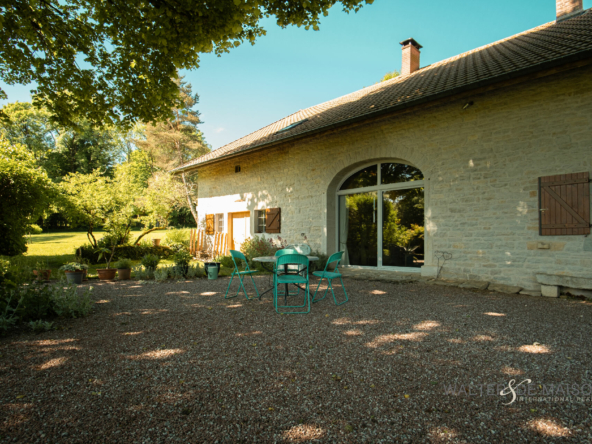 Le tout est implanté sur un terrain arboré et fleuri de 5 400 m², soigneusement entretenu, avec un bassin, une dépendance avec four à pain à l’ancienne et de nombreux coins propices à la détente.