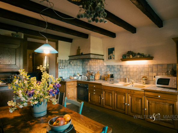Construite avec des matériaux nobles et haut de gamme, cette propriété marie avec élégance le charme de l’ancien (pierre, poutres apparentes, bois massif, huisseries chêne) et le confort contemporain.