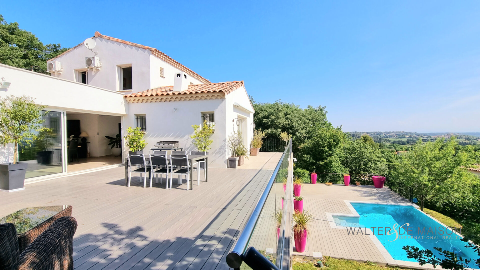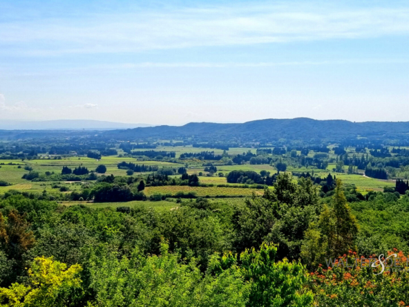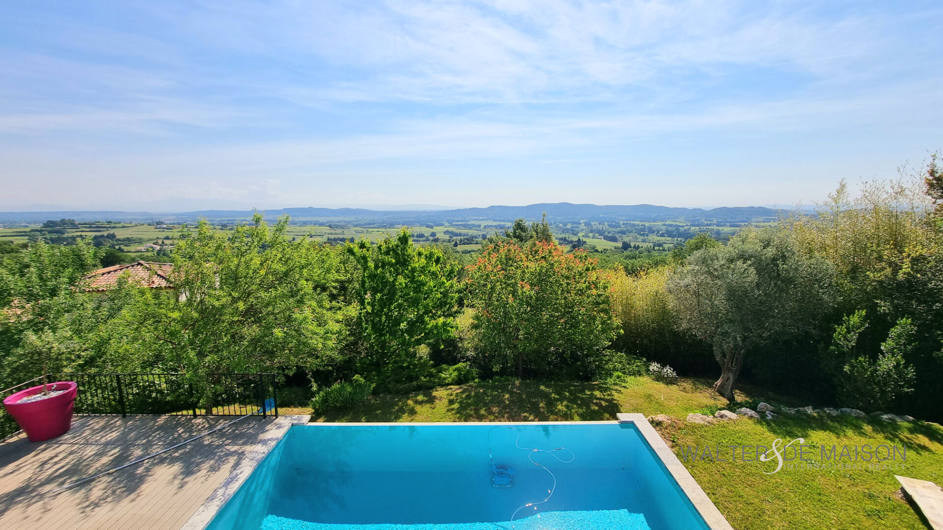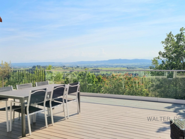 En position dominante cette villa contemporaine de 310m² avec piscine offre une vue panoramique imprenable sur le paysage Provençal , du Mont Ventoux jusqu’au dentelles de Montmirail , comme un immense tableau changeant de couleur au grès des saisons.