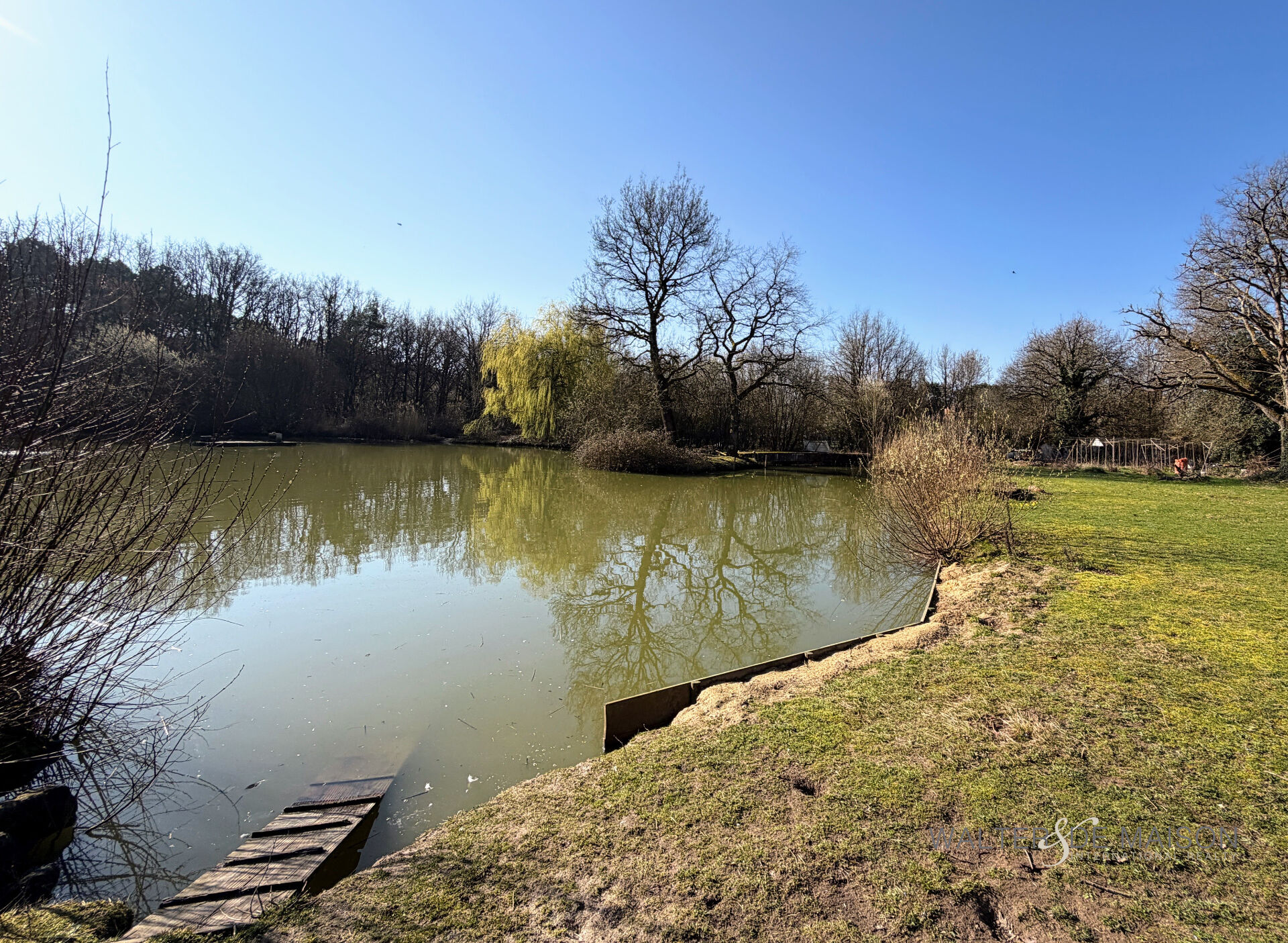 Le terrain, entièrement clos, est un véritable havre de paix où se succèdent étang, bois et verger, invitant à la détente.