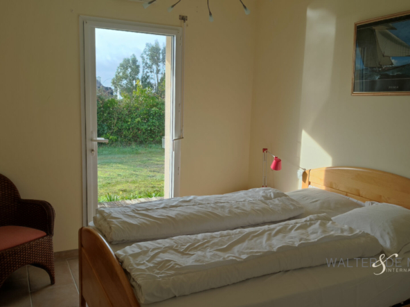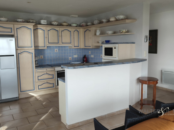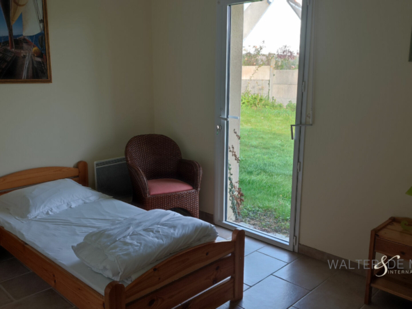 Entrée, cuisine aménagée et équipée ouverte sur un vaste séjour-salon (baie vitrée à galandage) donnant sur une terrasse bois, une suite parentale avec salle d’eau, wc, dressings privatifs et un accès direct à la terrasse, deux chambres lumineuses avec placards aménagés, une salle de bain, un wc séparé et un garage.