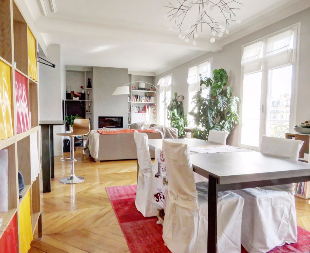 Saint-Mandé – Mairie. Superbe appartement de 3/4 pièces qui a bénéficié d’une rénovation totale haut de gamme en 2012. Situé au 3ème étage il se compose d’un double séjour très lumineux de 35 m2 avec cheminée, parquet point de Hongrie et moulures, d’une cuisine ouverte équipée, d’une grande chambre avec des meubles de rangements sur-mesure (17m2), d’une 2ème chambre avec dressing (13m2), d’une salle de bain avec WC, d’un coin buanderie avec des rangements complémentaires. Possibilité de 3ème chambre. En complément la copropriété de 7 lots dispose de la jouissance d’un jardin privatif. Les parties communes ont été entièrement refaites en 2015. Cave. Possibilité place de parking. A quelques minutes à pied du métro saint-mandé (ligne 1), très bel espace de vie avec une belle hauteur sous plafond, au pied des commerces et du bois de Vincennes. A découvrir ! Et avec une maison bleue, les honoraires sont fixes et réduits à 9 980 euros TTC. Fabienne LABBE (EI) Agent Commercial – Numéro RSAC : 440 837 037 – Créteil.