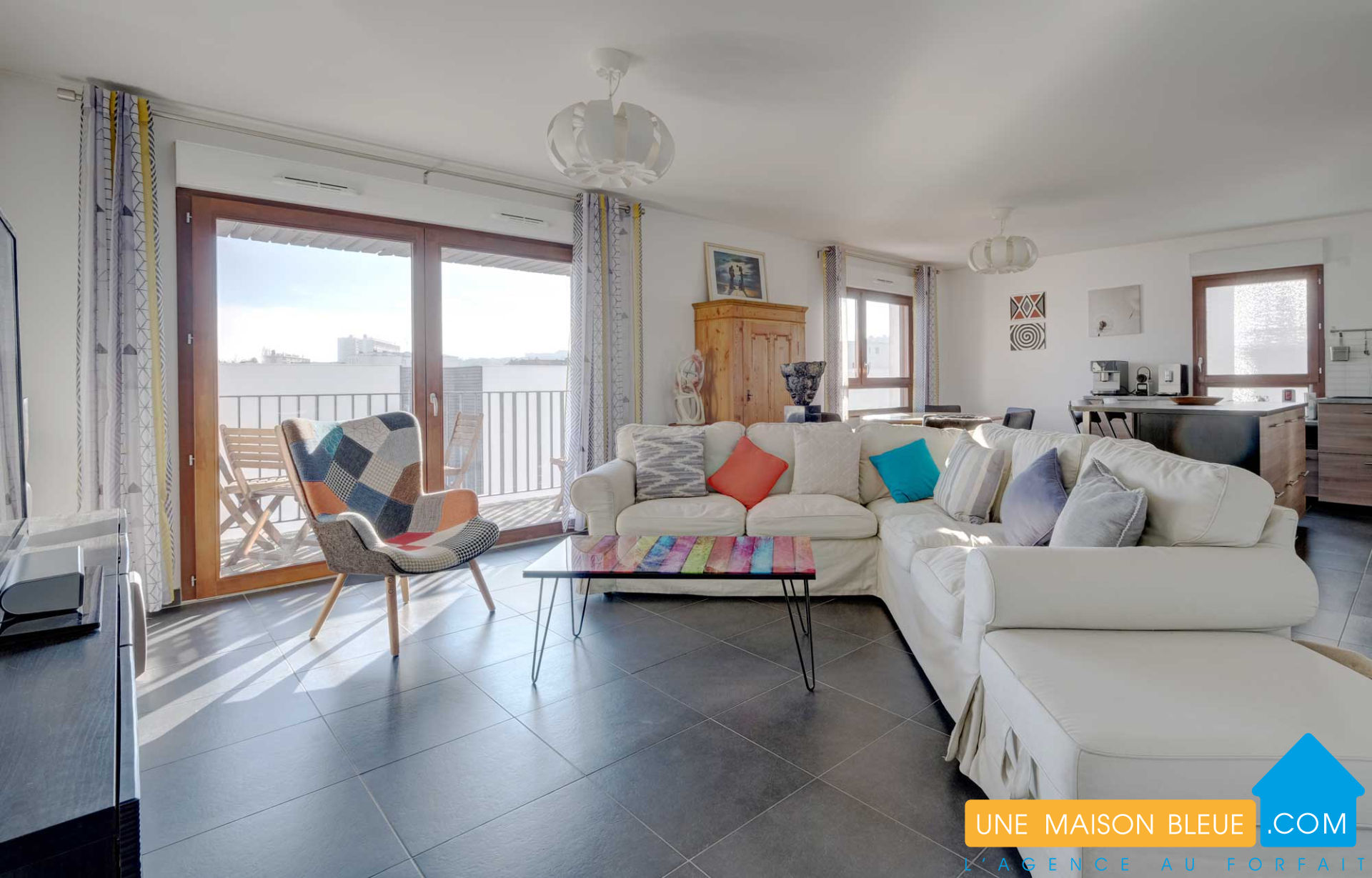 Ivry Sur Seine, en toute proximité du Kremlin Bicêtre, Appartement 5 pièces au 3ème et DERNIER ETAGE avec ascenseur de 139,4 m2 (carrez) avec 2 BALCONS de 5,2 m2 chacun, dans une copropriété très bien entretenue. Cet appartement lumineux en très bon état général est situé dans une résidence construite en 2014, aux normes BBC 2005. Il offre une entrée avec placard, un vaste salon exposé Sud-Est avec cuisine ouverte de 40,8 m2 (carrez) et accès à un premier balcon, 4 grandes chambres avec placards (16,20m2, 14,51 m2, 13,09 m2, et 19,64 m2 carrez), une salle de bain, une salle d’eau et 2 WC indépendants. La plus grande chambre dispose d’un accès au deuxième balcon. La distribution est très fonctionnelle et l’appartement dispose de nombreux espaces de rangements. Une activité libérale peut être facilement envisagée (possibilité d’ouverture indépendante, l’appartement étant issu d’un regroupement de 2 lots prévus à la construction) Chauffage, eau chaude et froide en collectif avec compteurs individuels. Double vitrage. Digicode, Interphone. Une place de parking en sous-sol complète ce bien. Le sous-sol dispose également d’un vaste espace de stationnement pour les vélos et motos. Possibilité d’acquérir une deuxième place de parking. Dans un secteur calme, à 8 min à pied de la station «La Briqueterie» du tramway T9 et du métro Kremlin-Bicêtre (ligne 7), à 14 mn en bus du RER C (gare d’Ivry), et à proximité des écoles et des commerces, appartement avec de beaux volumes. A découvrir ! Fabienne LABBE (EI) Agent Commercial – Numéro RSAC : 440 837 037 – Créteil.