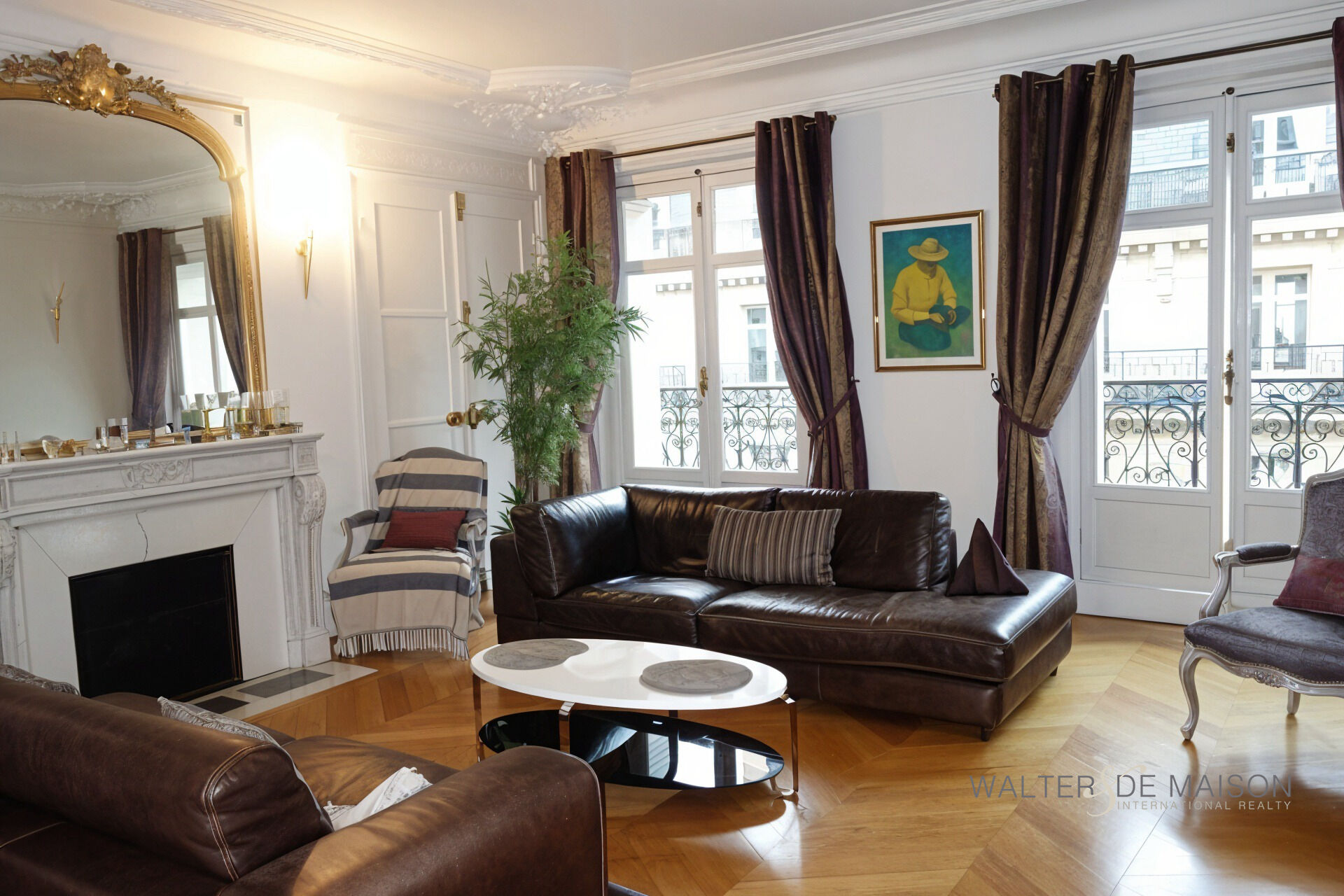 Paris 17ème. Quartier Wagram/Courcelles. Superbe appartement de réception et familial de 172 m2 (Loi Carrez). Situé au 4éme étage avec ascenseur d’un très bel immeuble haussmannien en pierre de taille, cet appartement traversant est composé de 6 pièces principales : entrée, double réception avec cheminée, 3 belles chambres sur cour, suite parentale avec salle de bains et cabinet de toilettes privatifs, cuisine dînatoire, salle d’eau, toilettes séparés, espace buanderie, nombreux rangements et double cave. Excellent état général, très belles prestations, beaux volumes et plan fonctionnel. Appartement très lumineux (exposé sud-ouest/est) doté de petits balcons, charme de l’ancien (parquet à chevron, moulures, cheminées, crémones d’origine…). Belle hauteur sous plafond. Immeuble sécurisé (gardien) et très bien entretenu. Possibilité de location parking à proximité. Caroline NEYROUMANDE (EI) Agent Commercial – Numéro RSAC : 533 023 693 – Paris.