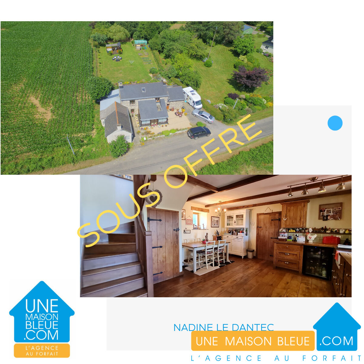 Ce bien vous a été est proposé par Nadine LE DANTEC – RSAC 418 177 879 – pour le réseau UNE MAISON BLEUE Aujourd’hui, je vous propose de venir découvrir cette maison de 1922, au potentiel certain, dans un cadre verdoyant, au coeur de la commune de St Aignan. Elle bénéficie d’un très joli terrain plat de 1430 M² environ, avec un espace balnéo, un beau poulailler en plein air et un potager. Une véranda à l’avant de la maison, vous procurera un lieu convivial et chaleureux durant toutes les saisons. D’une surface habitable de 87,61 M² environ, elle se compose au rez de chaussée d’une belle cuisine aménagée et équipée en bois de haute qualité, parquetée en chêne massif. Une arrière cuisine, une buanderie avec une salle d’eau et un w.c. un salon équipé d’un poêle récent. A l’étage, le dégagement dessert deux chambres et une salle de bain. Cette charmante maison ne vous laissera, sans nul doute, indifférents, avec ses belles possibilités d’agrandissement grâce aux deux dépendances attenantes, pour y vivre, réaliser des chambres d’hôtes, etc … 169 995 euros FAI 163 000 euros net vendeur Je me tiens à votre disposition pour répondre à toutes vos questions au 06.62.16.14.26 UNE MAISON BLEUE L’agence au forfait imbattable à 6980 euros, à la satisfaction client certifiée à 9,5 /10. Photos professionnelles Photos aériennes Visite virtuelle Home staging 3D (selon la catégorie de mandat) Votre spécialiste UNE MAISON BLEUE, vous apportera sa très bonne connaissance du marché immobilier, un accompagnement solide de la signature du mandat jusqu’à la vente définitive chez le notaire. Notre force, un forfait imbattable : ” Ce n’est pas parce que votre maison est magnifique, que les frais d’agence, doivent l’être aussi ! “