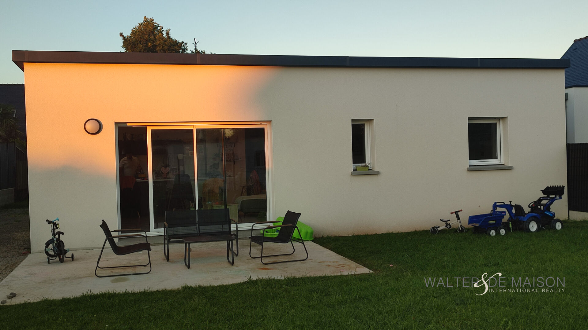 En EXCLUSIVITE : bien exceptionnel sur Lesneven, maison de 2024 se composant salon séjour avec cuisine aménagée équipée de qualité , 2 chambres de 11m² , 1 chambre de 16m² avec suite parentale , 1 WC , cellier , 1 terrasse de 20m² exposé sud /ouest . pas de travaux à effectuer juste y apporter une touche personnelle . proximité des commerces et des écoles. construction trecobat début 2024 idéal pour bien y vivre , également pour investisseur a but locatif loyer dans la rue entre 900 euros et 1100 euros motif de la vente mutation professionnelle, à visiter rapidement Jean-Pierre BONAVANTUR (EI) Agent Commercial – Numéro RSAC : 809 336 423 – Brest.