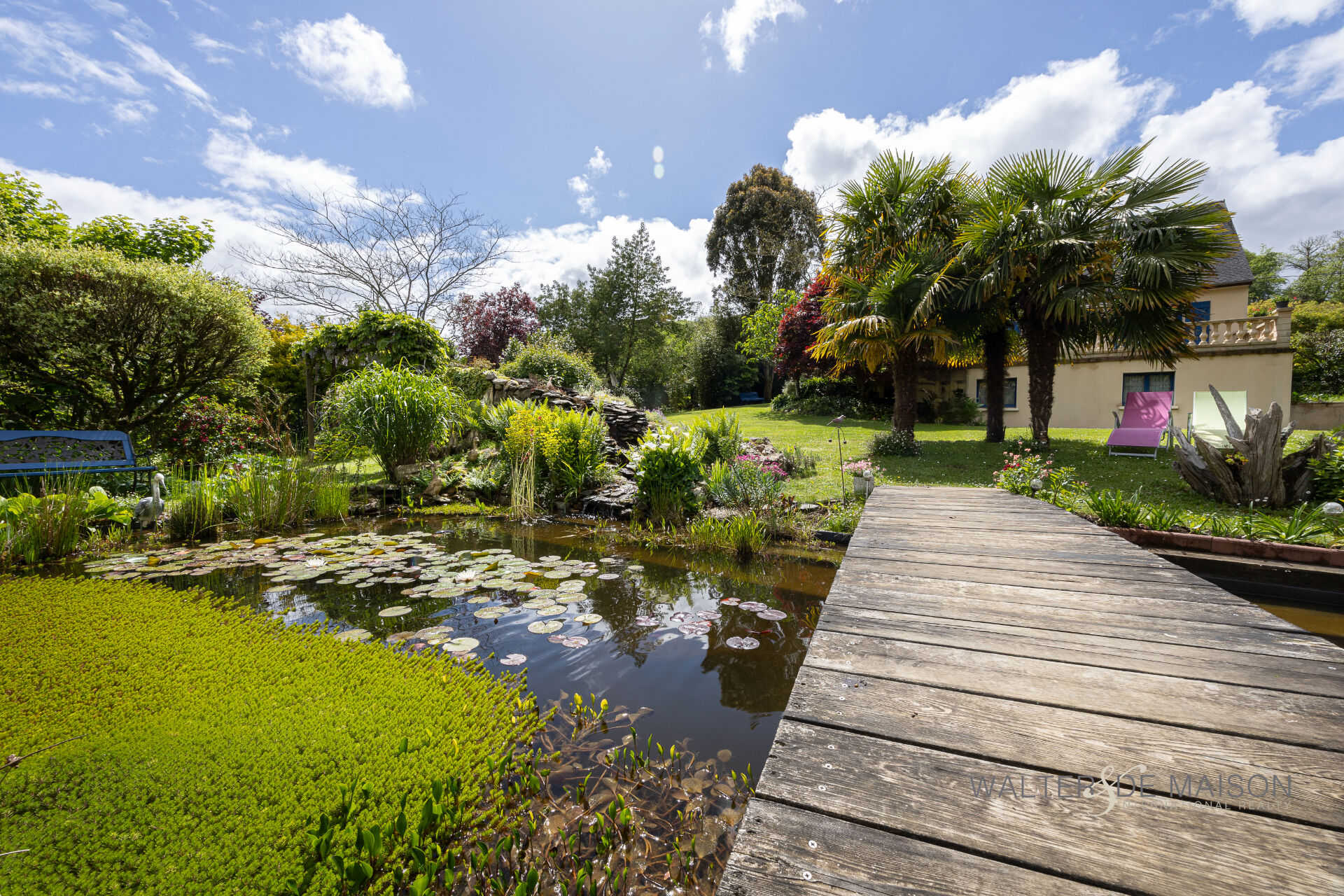 Entièrement clôturée et accessible par deux portails, ce jardin exceptionnel vous charmera par ses éléments uniques : une fontaine apaisante, un étang parsemé de nénuphars où coassent les grenouilles, un potager et un accès direct à la rivière du blavet, idéale pour la pêche à la mouche.